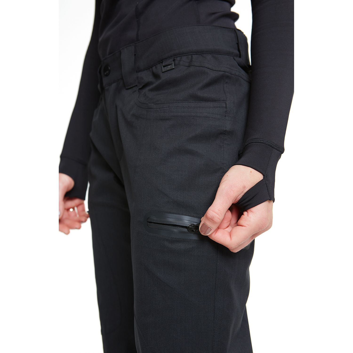 - BREATHABILITY: Refers to the pants ability to allow moisture vapor, such as sweat, to escape from inside. When you are skiing or snowboarding, your body generates heat and moisture, which can make you feel sweaty and uncomfortable. If this moisture is not able to escape from inside the pants, it can make you feel damp and cold, despite pants having a high waterproof rating and heavy insulation. Snow pants are designed to be breathable, meaning they allow moisture vapor to escape while still being waterproof. This is achieved with advanced fabrics and technologies that allow air and moisture to pass through the pants while keeping water out. The breathability of a snow pants is typically measured in grams and is referred to as the "breathability rating." This rating tells you how much moisture vapor the fabric can allow to escape per square meter in a 24-hour period. For example, pants with a 10,000g breathability rating means it can allow 10,000 grams of moisture vapor to escape per square meter in a 24-hour period.