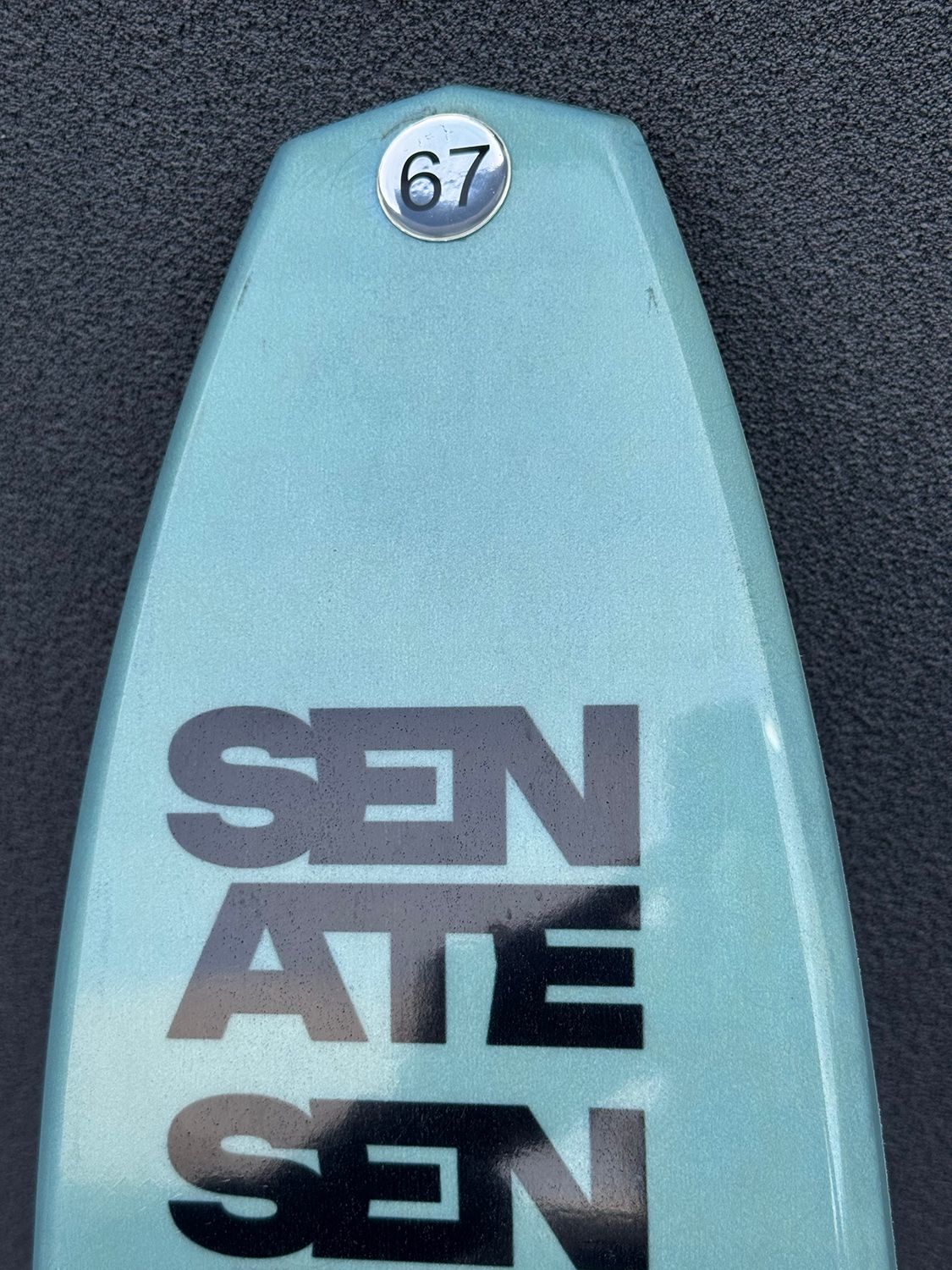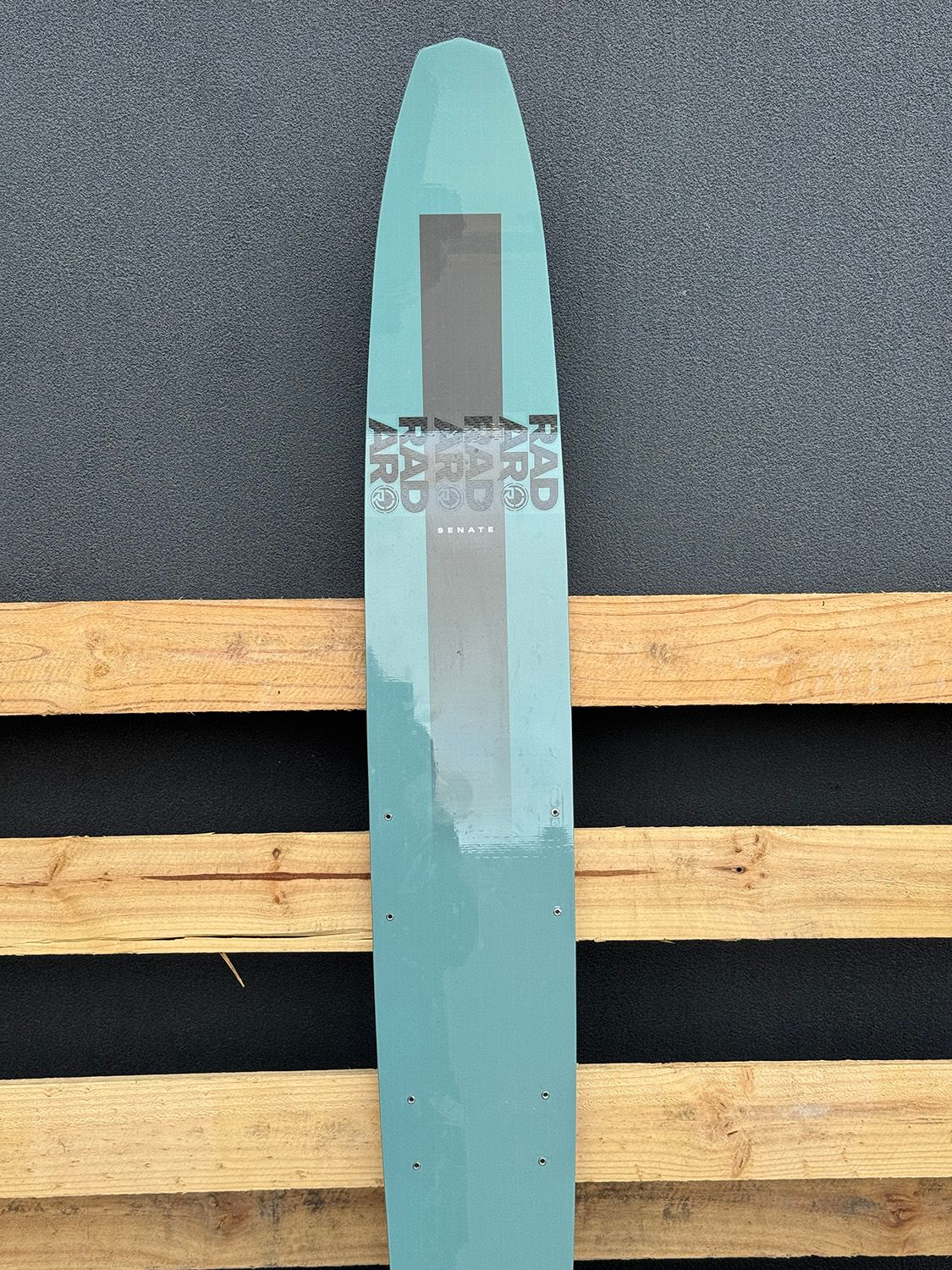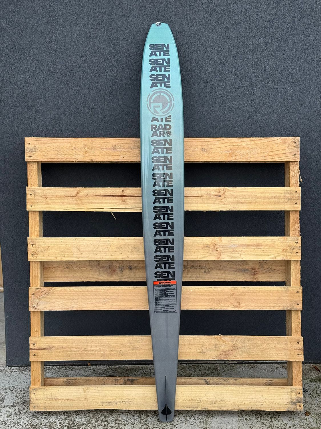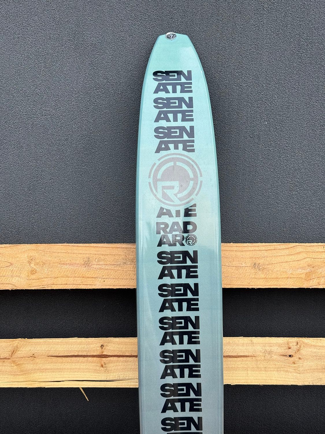 2026 Ex Demo Radar Senate Graphite 67". Awesome crossover open water / tournament ski, with adjustable fin. This ski has been lightly used at a couple demo days for skiers, but it's in immaculate condition, you'd barley tell its been used.