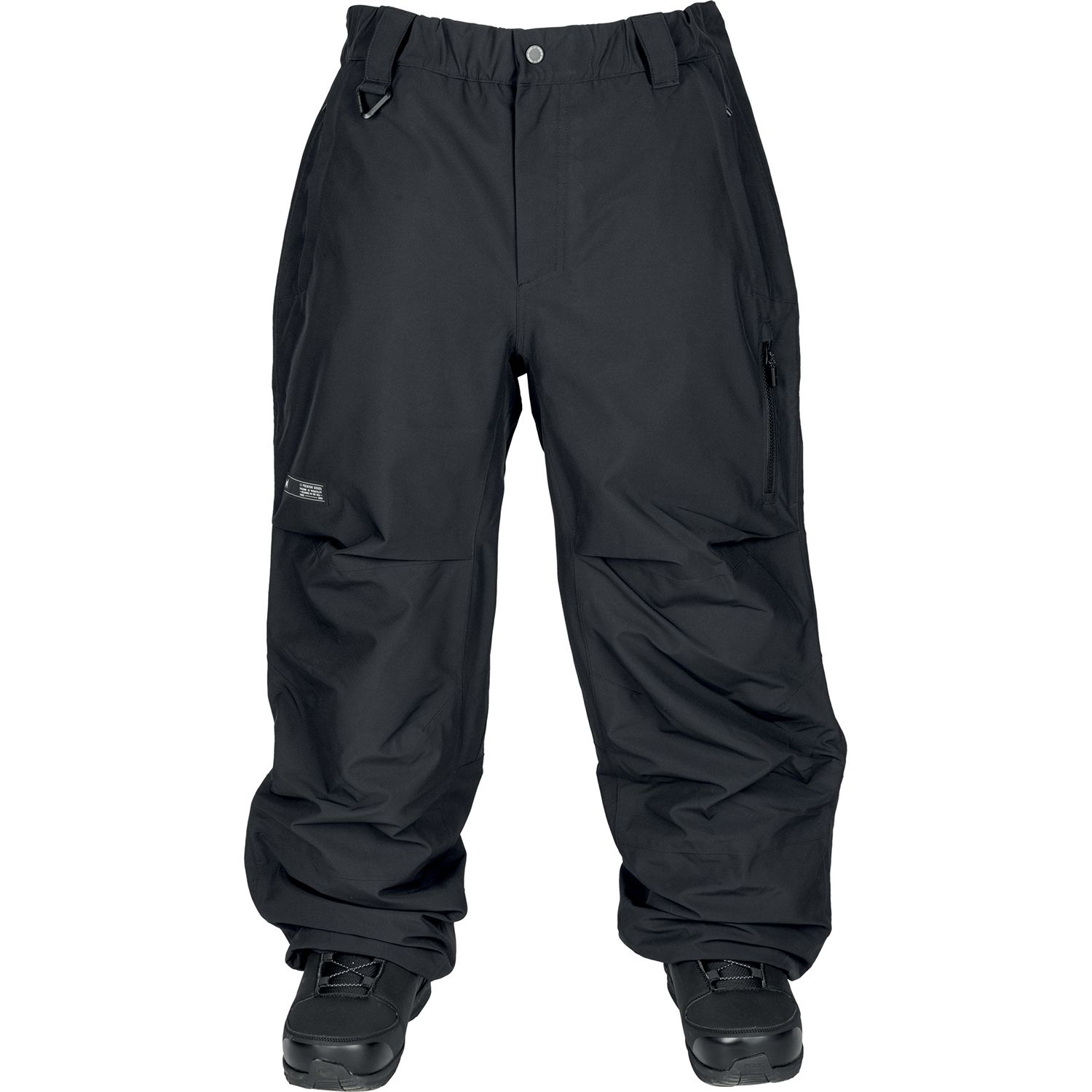 - GORE-TEX: Gore-Tex is a high-performance fabric technology that is commonly used in snow pants and other outdoor gear. It is a waterproof and breathable fabric that is designed to provide protection from the elements while still allowing moisture vapor to escape. The Gore-Tex membrane is made up of microscopic pores that are much smaller than water droplets, but larger than water vapor molecules. This means that water is not able to penetrate the membrane from the outside, but sweat and other moisture vapor can escape from the inside, keeping the wearer dry and comfortable. Gore-Tex is designed to be lightweight and packable, making it a popular choice for backcountry skiers and snowboarders. In addition to its waterproof and breathable properties, Gore-Tex is also windproof, which helps to provide extra protection from the elements.