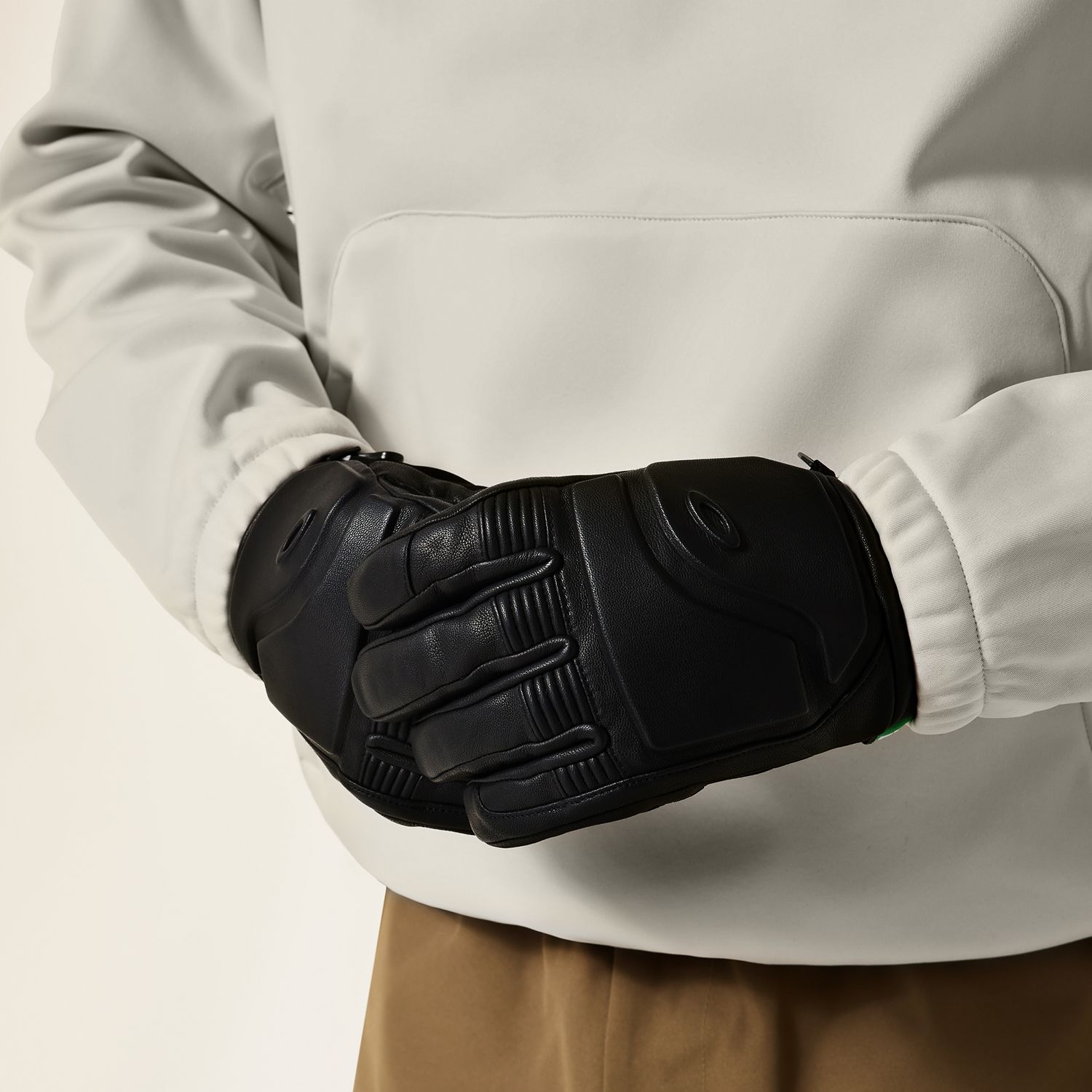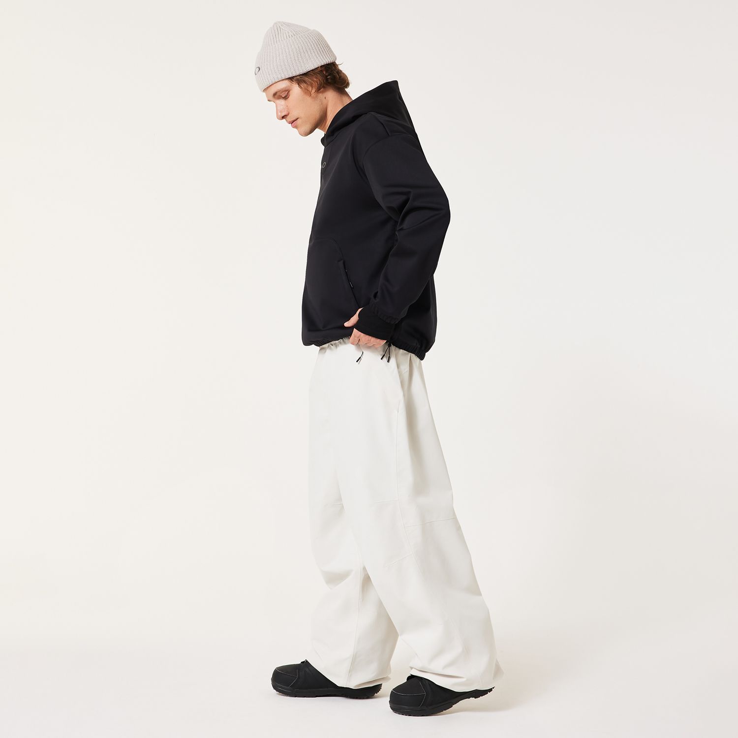 The Solar Rail Softshell Hoodie takes a hoodie and pushes it into performance territory. Oakley starts with mostly recycled materials, then adds FN Dry 10K laminate and Hydrofree DWR so the piece sheds moisture while staying breathable and warm through park laps, side-hit sessions and resort days. The fit is baggy on purpose, giving it a relaxed silhouette that moves easily and layers well, while pit vents and a lateral zip opening on the left side add the airflow and accessibility you do not get from ordinary fleece. A kangaroo pocket keeps hands warm and gear close, and the overall feel stays soft, technical and adaptable from the slope to après. This is the layer that looks casual at first glance but performs with intent once the weather changes. Easy to wear, hard to classify and pure Oakley in attitude, the Solar Rail is built for movement. On and off.