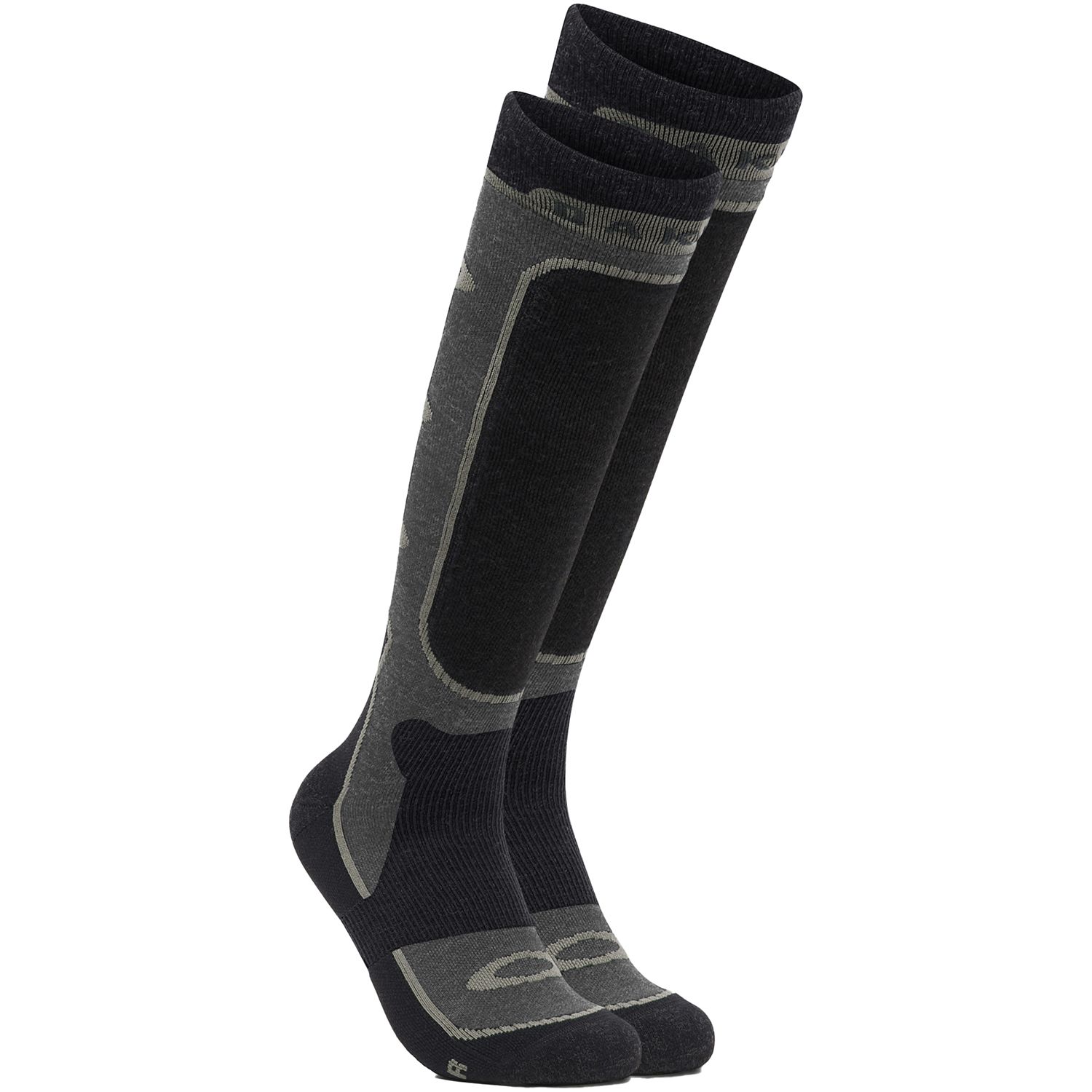 Oakley builds this over-the-calf sock from a premium merino wool blend to bring warmth, comfort and natural temperature management to every run. Reinforcement in high-pressure zones like the toe, heel and shin adds protection where ski and snowboard socks work hardest, while the seamless toe helps eliminate bunching and hot spots that can ruin a session. The fit is performance-focused without feeling restrictive, giving you a smooth interface inside the boot and a more dialed feel from first chair to last lap. Bold Oakley branding at the toe and shaft keeps the look sharp, but the real story is all-day dependability. Whether the snow is deep, the weather is cold or the agenda is to ride longer, the Patrol Sock is built to keep your feet comfortable, protected and ready for whatever the mountain delivers next.