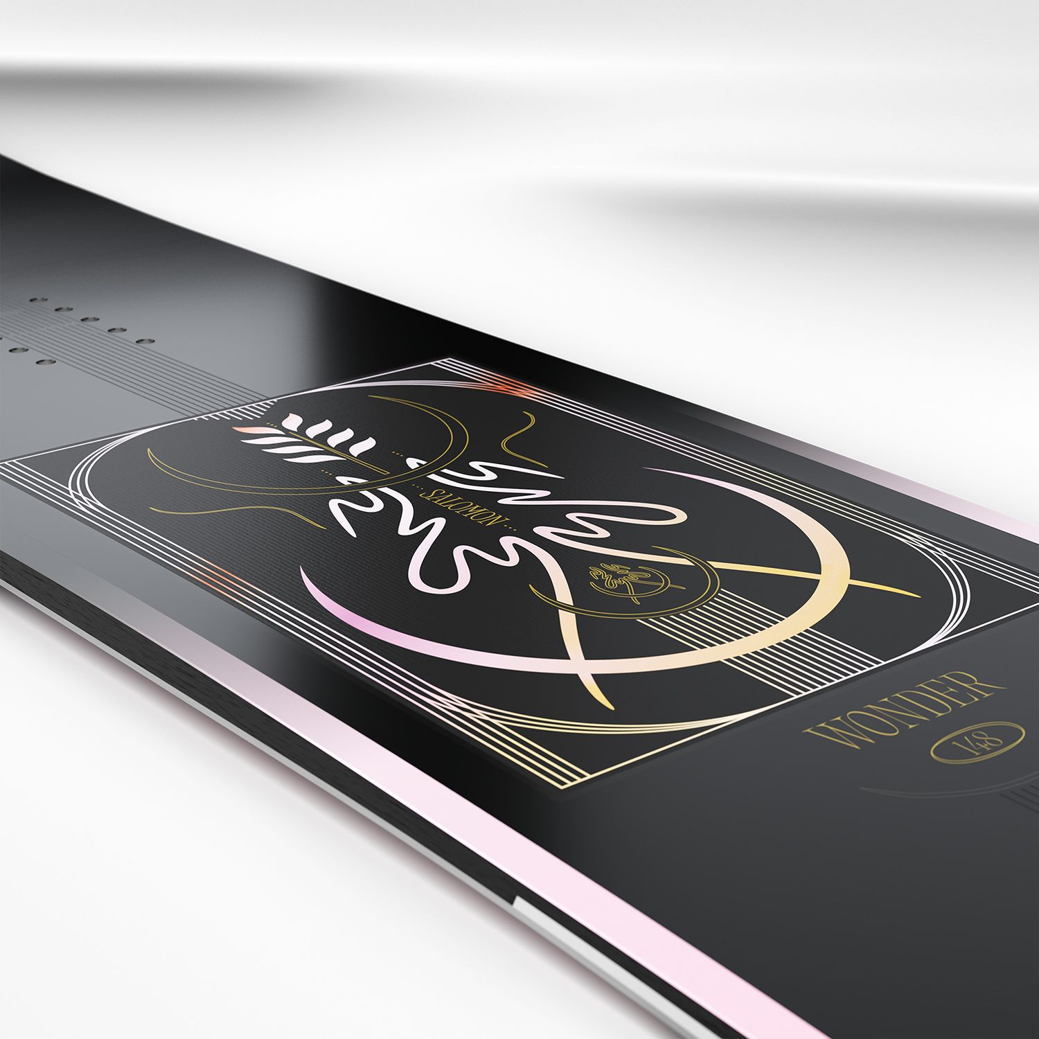 A highly versatile women’s snowboard for all abilities and conditions. The Wonder is an all-mountain board that’s ready to explore all types of terrain. A directional twin shape paired with Rock Out Camber allows for superior rideability on everything from groomers to powder. A medium flex and Ghost Basalt stringers provide a perfect balance of stability and playfulness while cork dampening ensures a smooth ride.